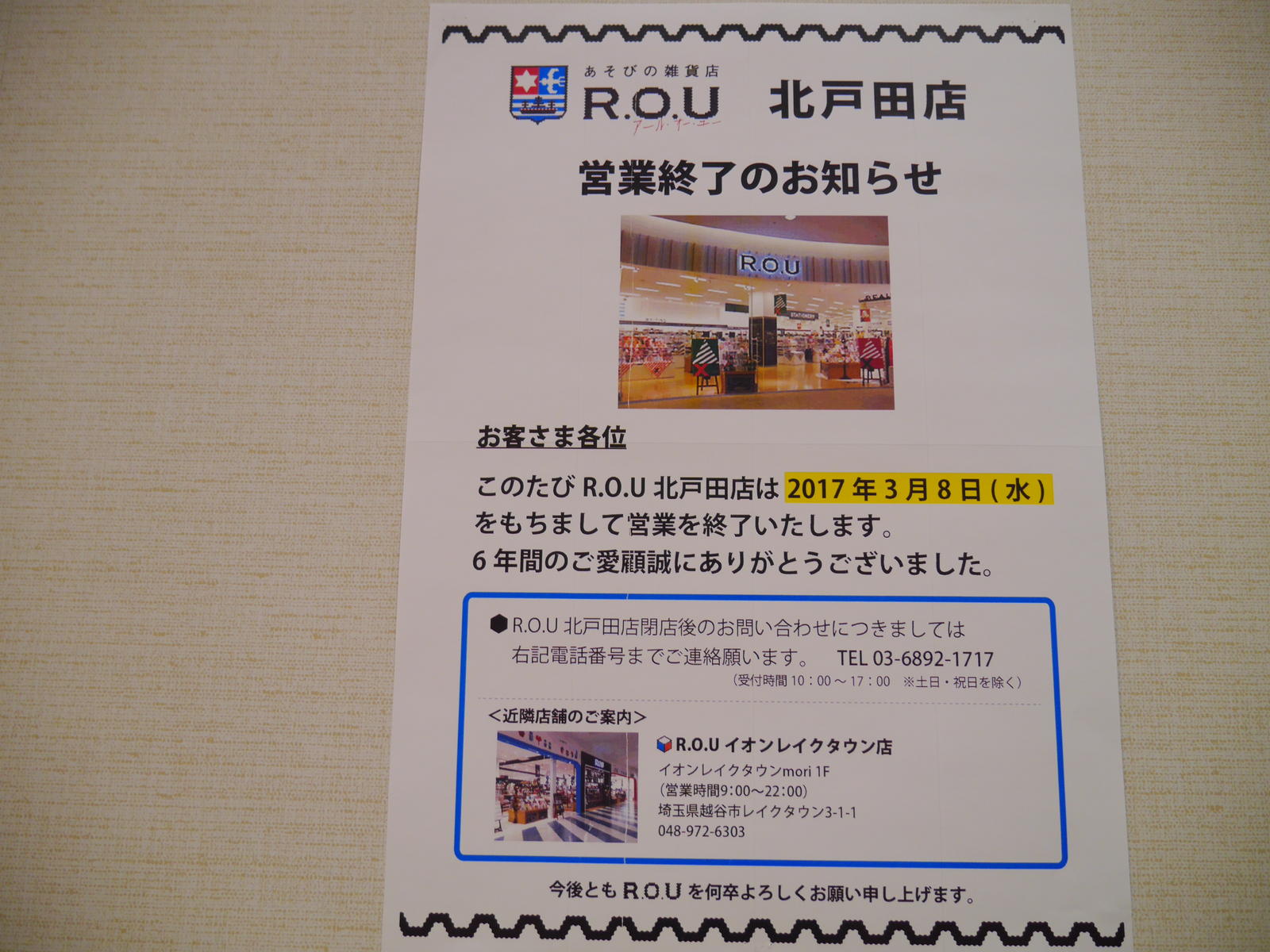 ROUは2017年3月8日に閉店していました