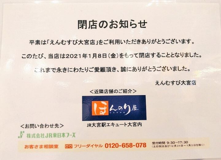えんむすび大宮店が2021/1/8に閉店