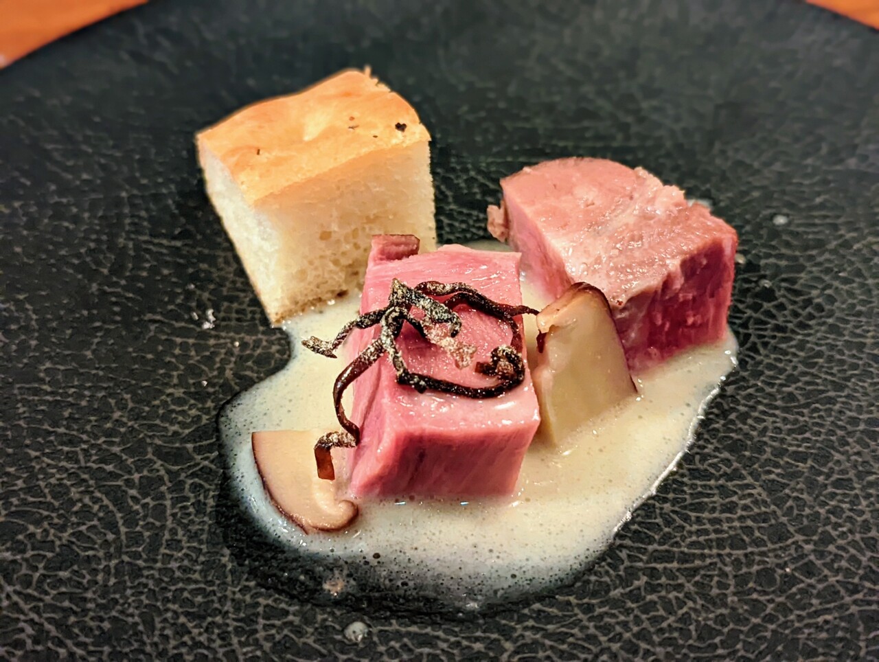 低温調理されたお肉が中心で、何度で何時間加熱したか、という解説つきでした。