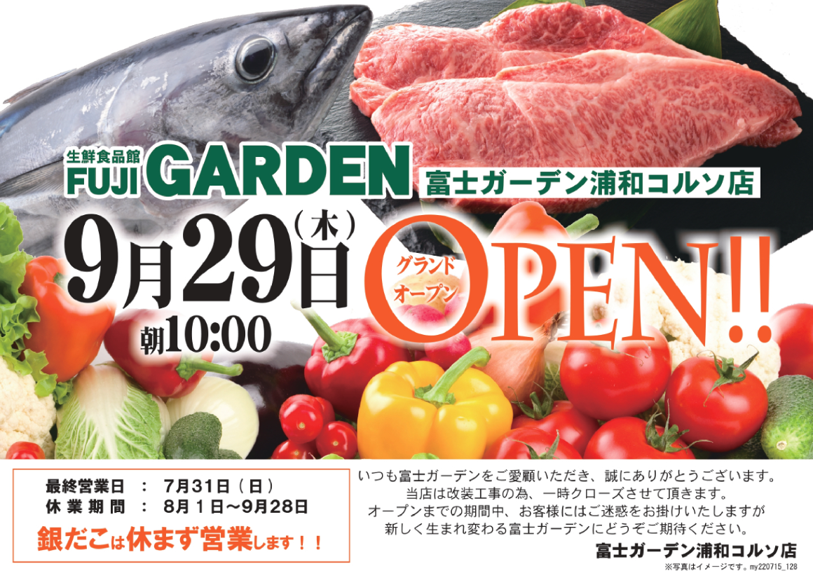 コルソ地下1階にある「富士ガーデン浦和コルソ店」が2022年9月29日(木)10時リニューアルオープンです。