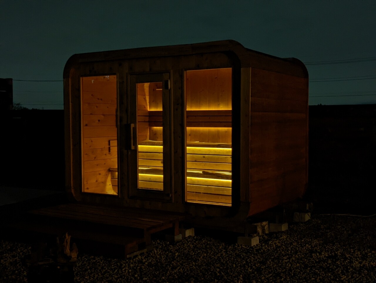 1番の目玉であるサウナは木製のスクエアタイプ。