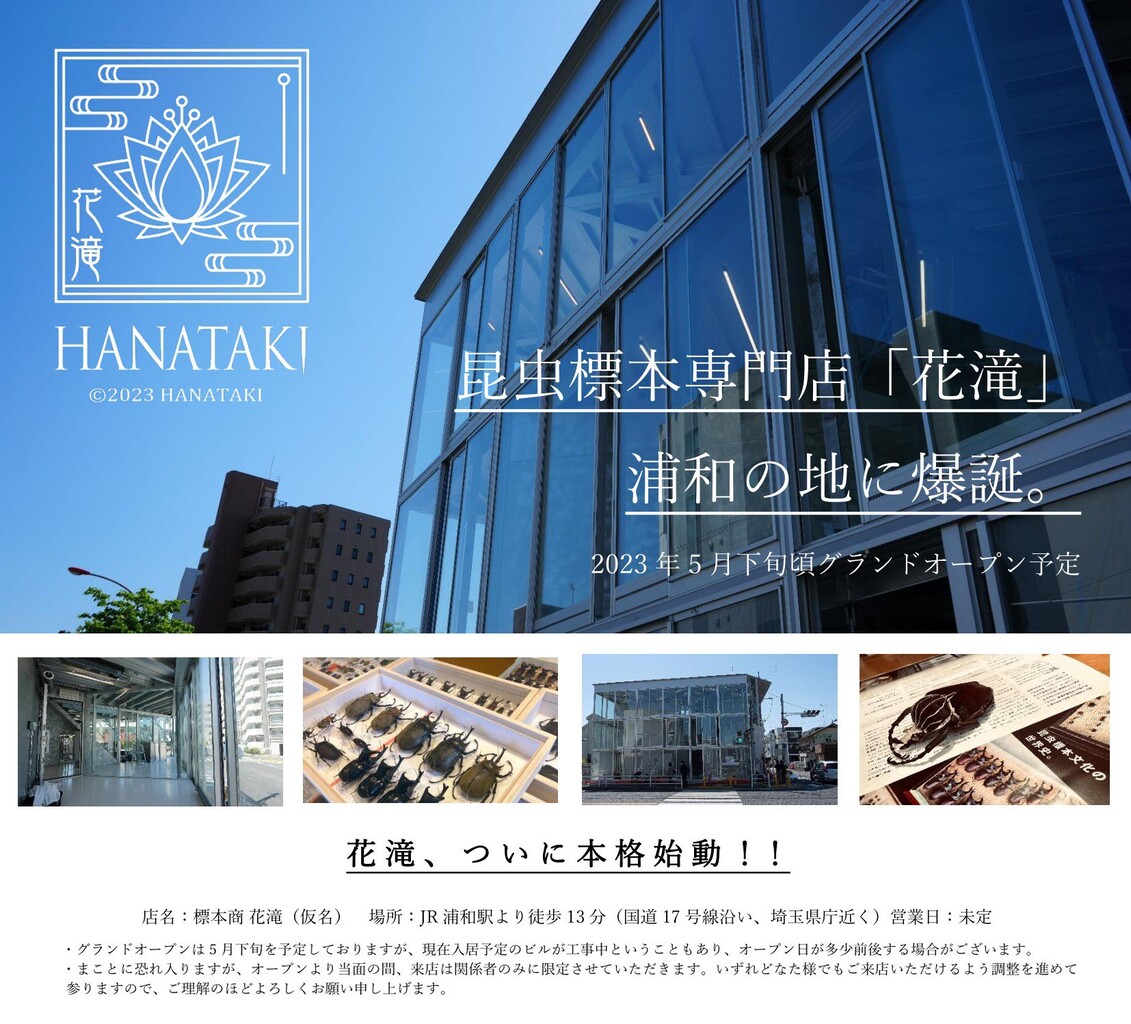 クワカブなどの標本専門店「花滝」が5月下旬にオープン決定!!(最寄り:JR浦和駅)🎉