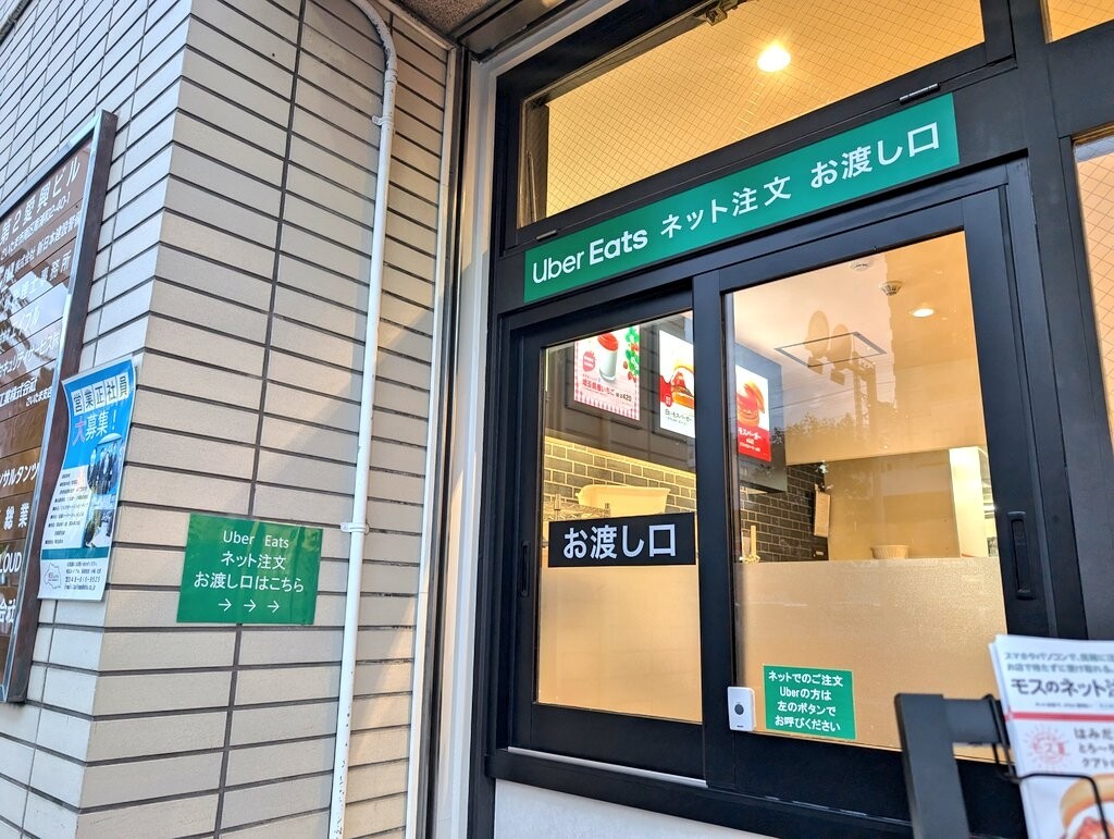 ウーバーイーツのネット注文お渡し口は入口の脇にあり、