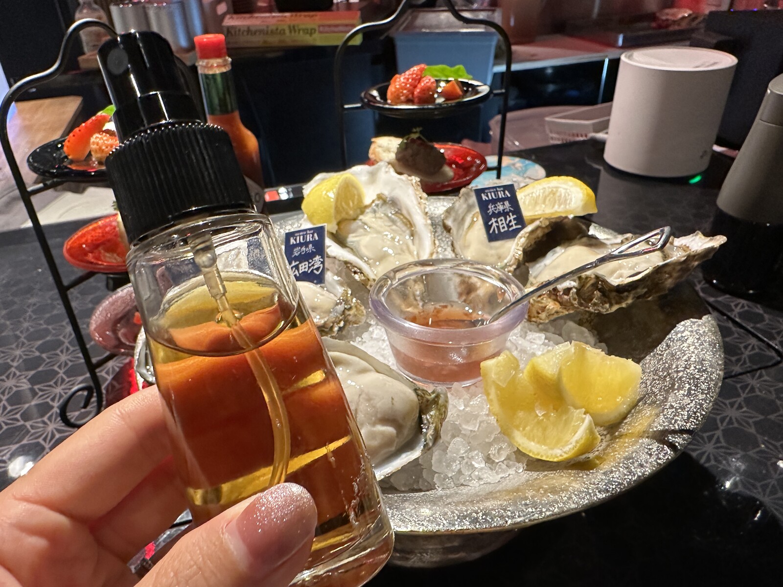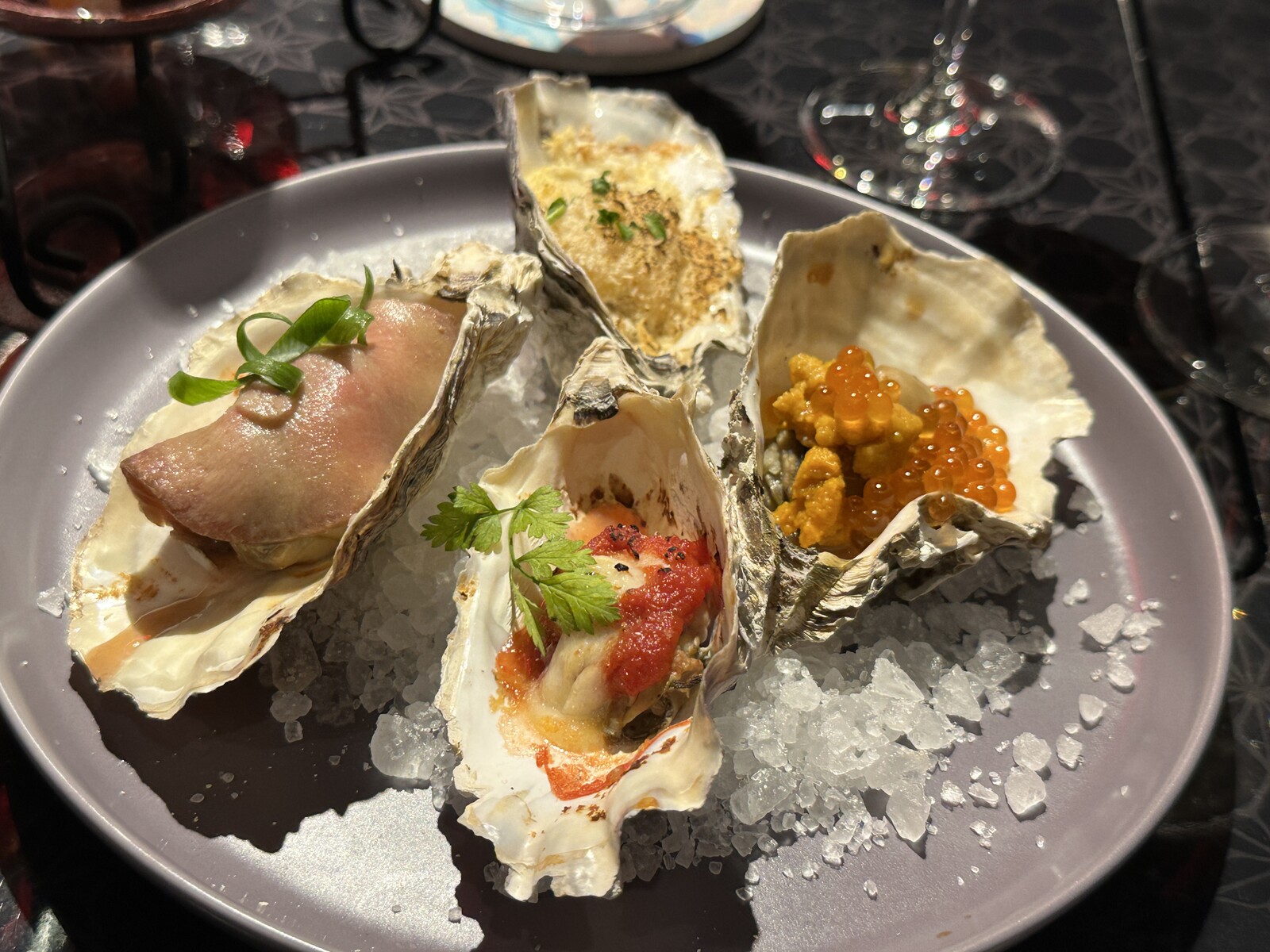 トマトや、うにいくら、グラタン、ローストビーフなどでいただく牡蠣。見た目にもカラフルで可愛いです。