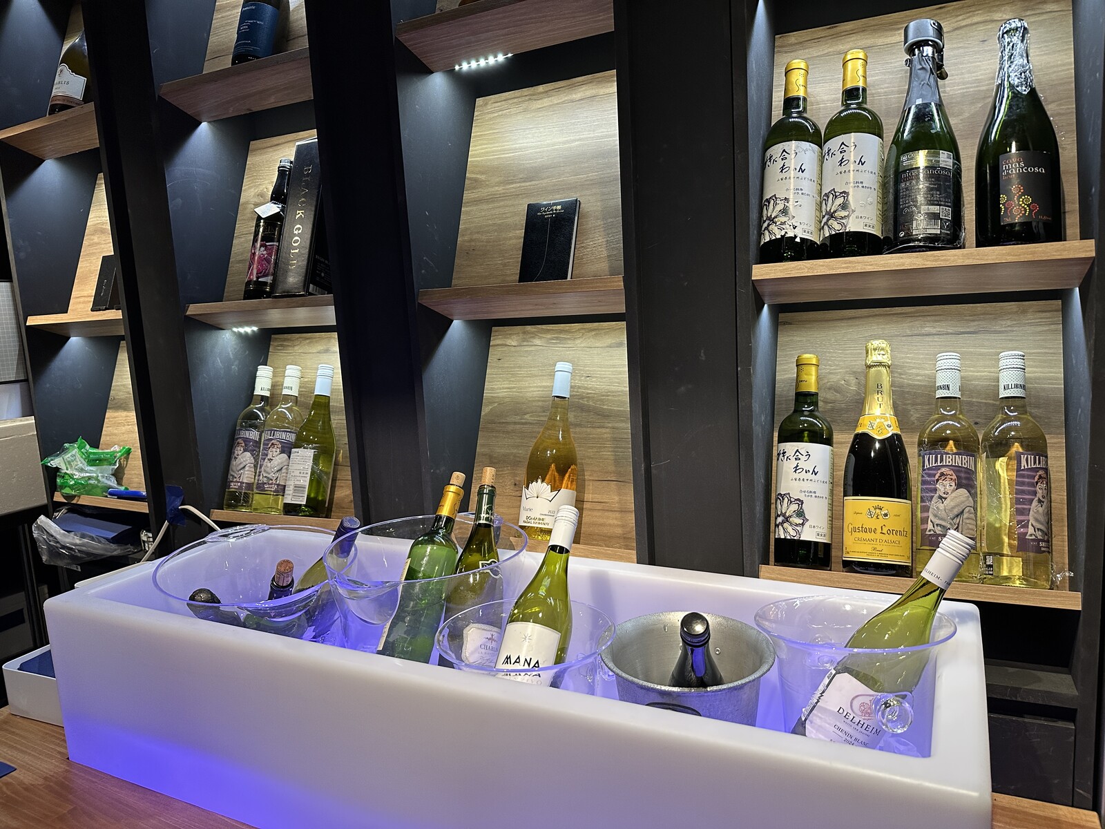 2時間3,000円で牡蠣に合う各種ワインと日本酒がセルフ飲み放題となっています。