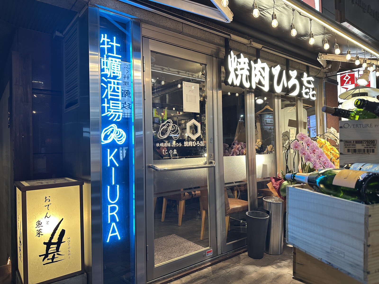 「牡蠣と牛タン 牡蠣酒場きうら」はJR大宮駅西口から徒歩約5分の場所にあります。焼肉ひろきの店内奥にある隠し扉から入店するという、ちょっとした秘密めいた入り口がワクワク感を高めてくれます。