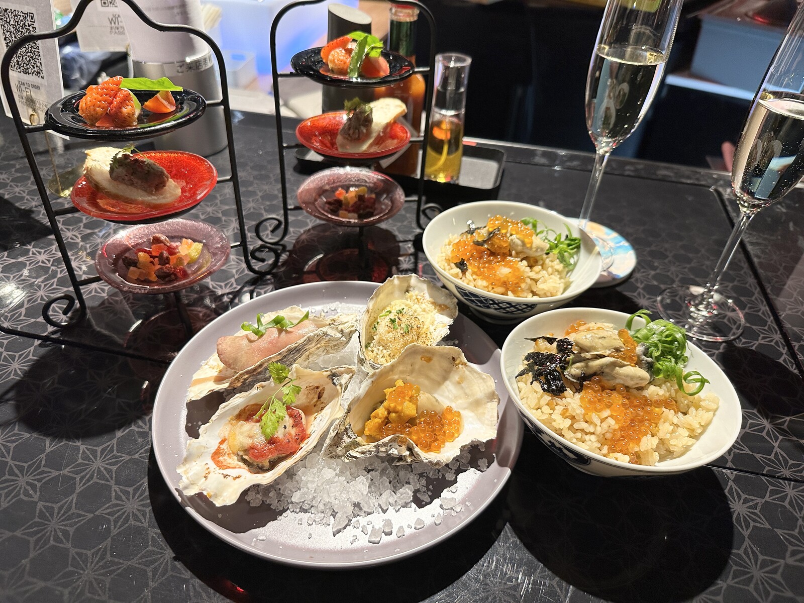 また、コース料理も充実しており、7,150円(税込)のコースでは、旬の生牡蠣三種食べ比べや牡蠣フライ、牛タンの厚切りロースト、牡蠣と和牛の雲丹しゃぶなど全10品が楽しめます。2名からの予約で、滞在時間は2時間となっています。