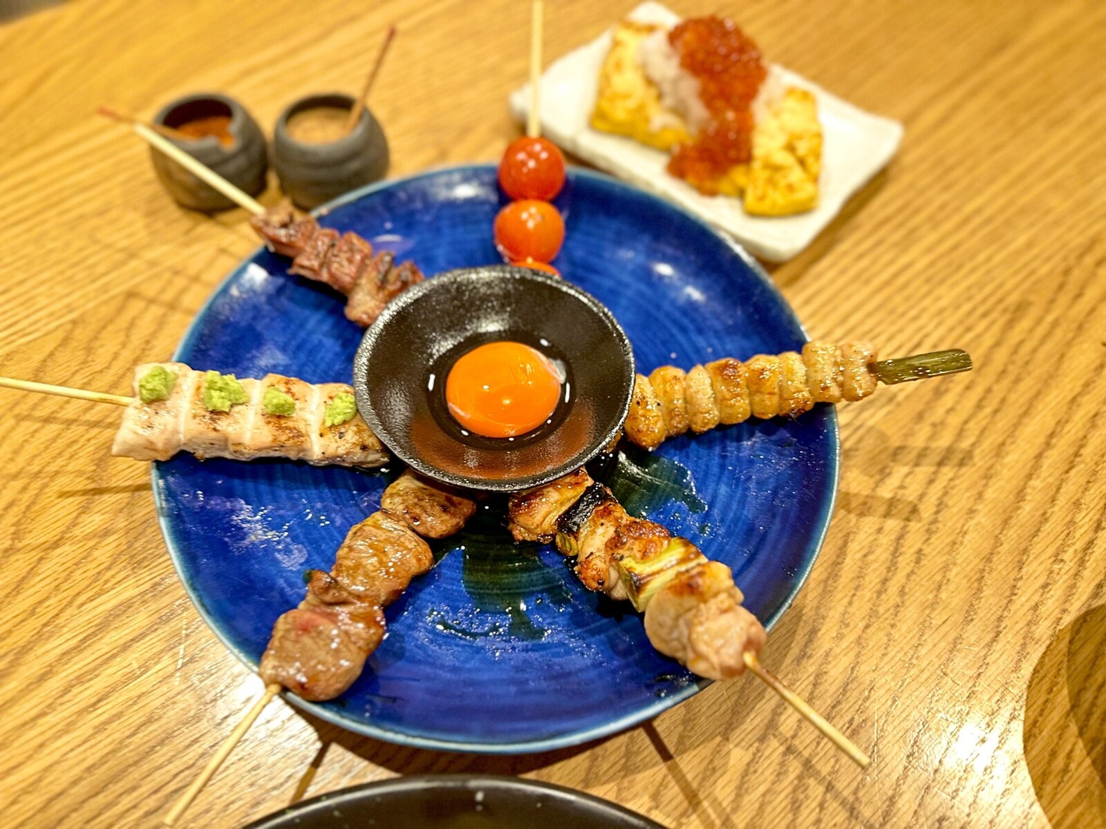 「美桜鶏の串焼き」や「野菜の肉巻き串」が看板メニュー。炭火でじっくり焼き上げた串は香ばしく、特に砂肝は食感が楽しめる一品。ワインや日本酒も充実しており、「炭火焼×ワイン」のペアリングを楽しめます。席料はお通し込みで1人600円。