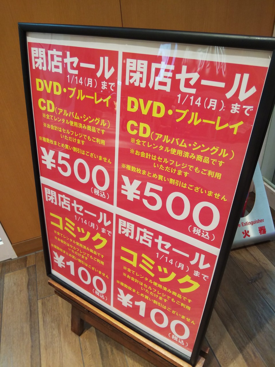 1/7からは閉店セールで店内のレンタル品を「販売」しています