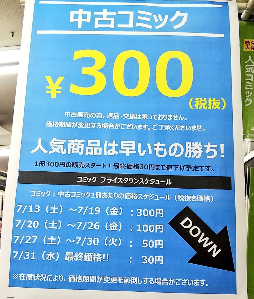 徐々に値引きされていって、最終日には100円、100円、30円に!