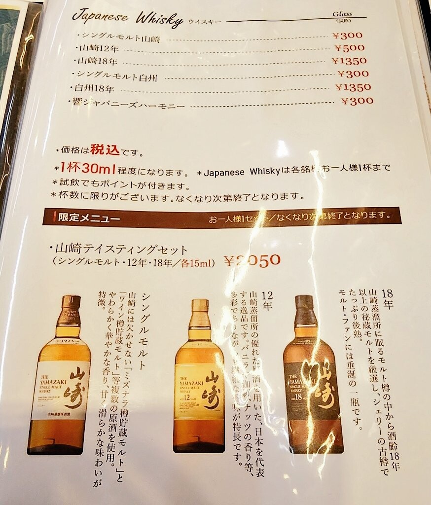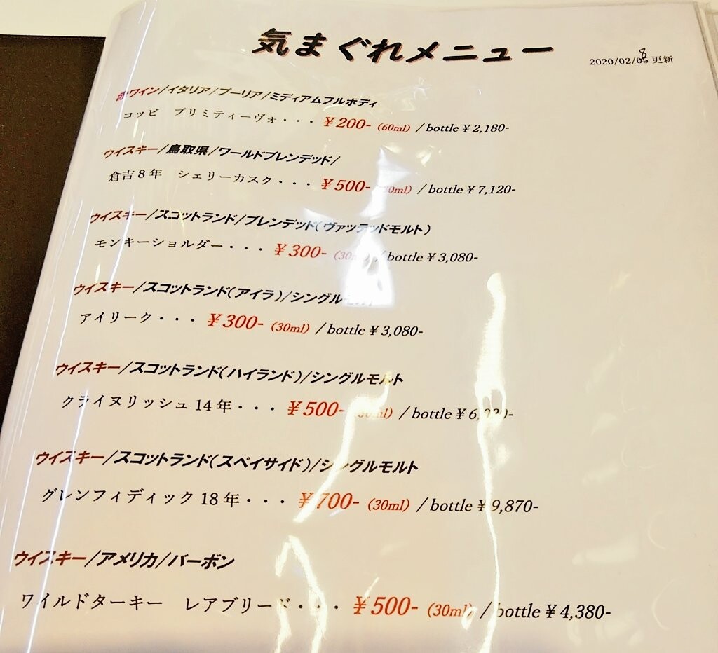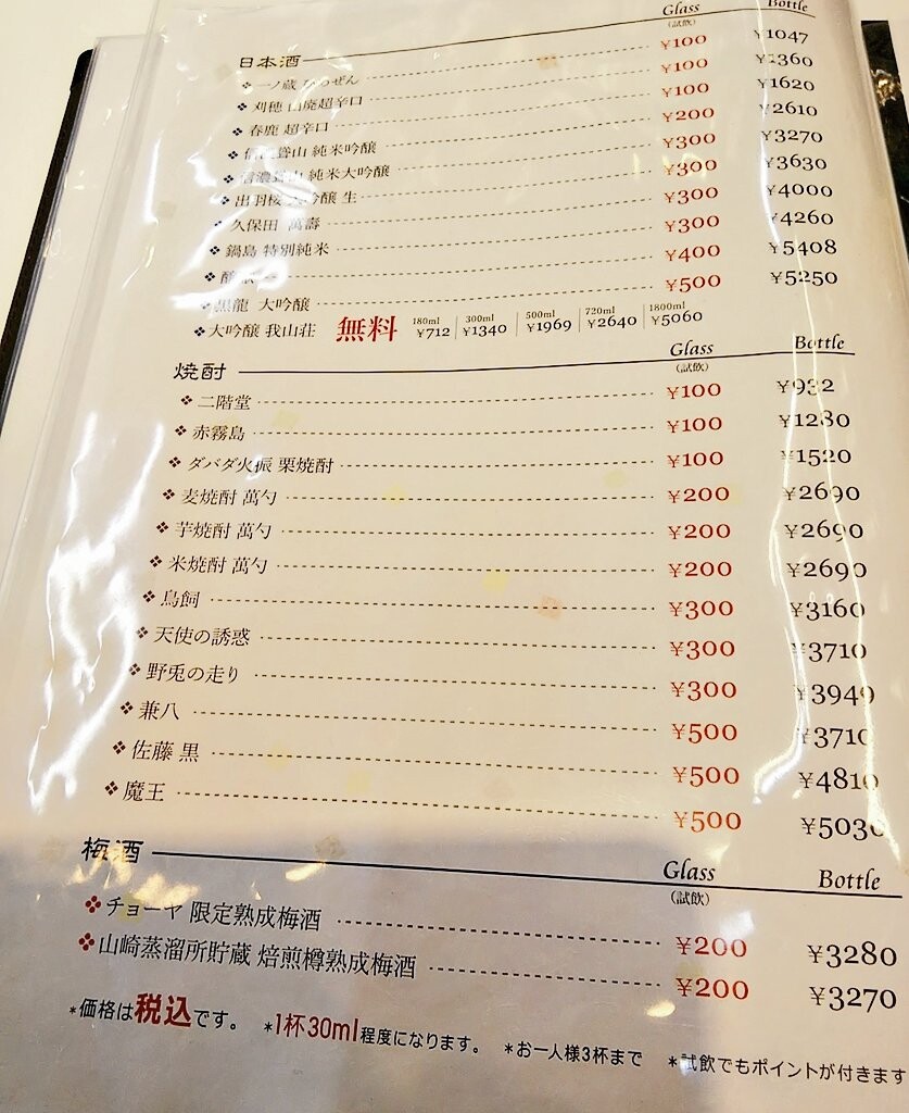 ビックカメラ試飲コーナーのメニュー(2020/2)