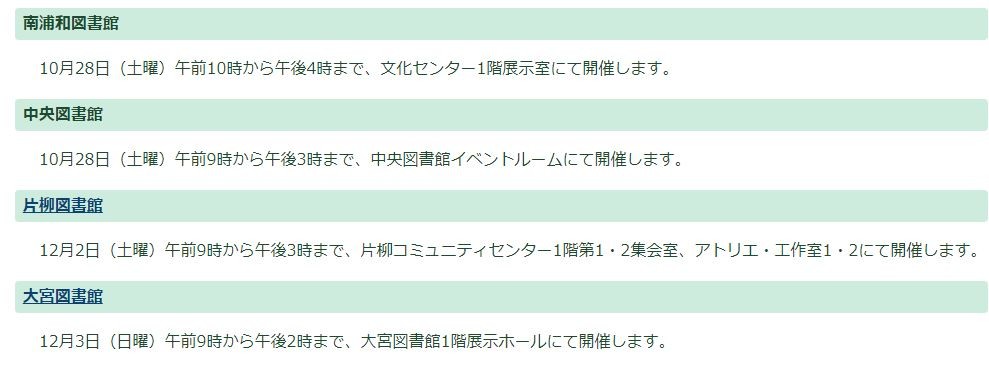 今後北浦和図書館で開催があるのかどうかも現時点ではわかりません