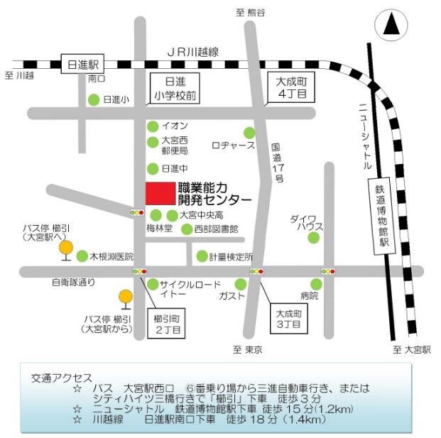 近くにはイオン大宮があり、こちらを目指していくとおのずと職業能力開発センターにも到着できるでしょう