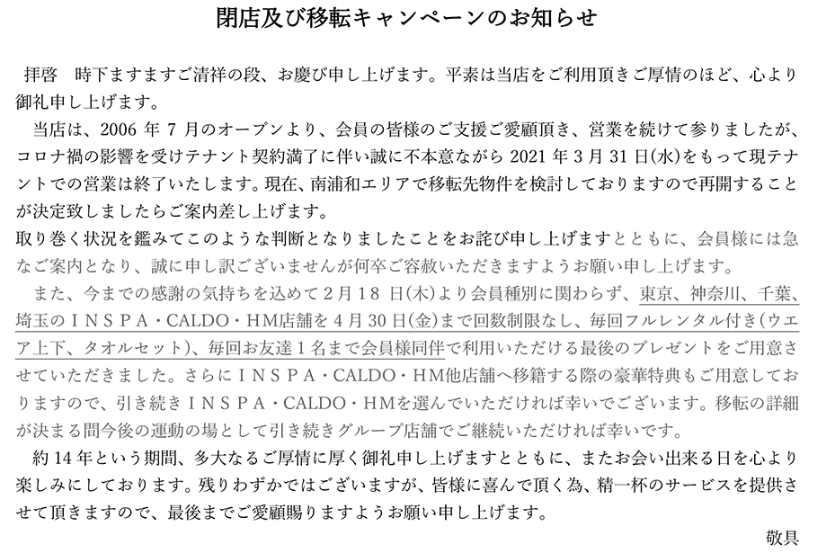 浦和駅東口にある「レンスペ浦和駅前店」が2021年3月7日で閉店です。