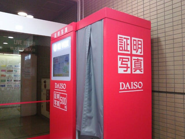 ダイソー武蔵浦和店に500円の証明写真機が登場!履歴書もパスポートも1機でOK!かなり万能!