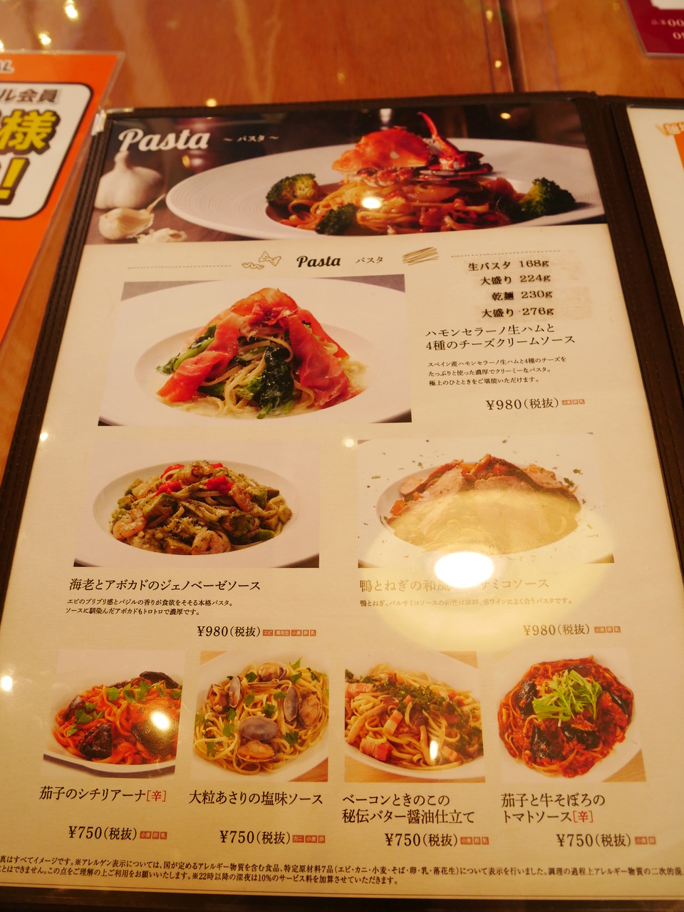 ランチタイムはオトクなセットメニューもありますが、パスタのメニューが限られます