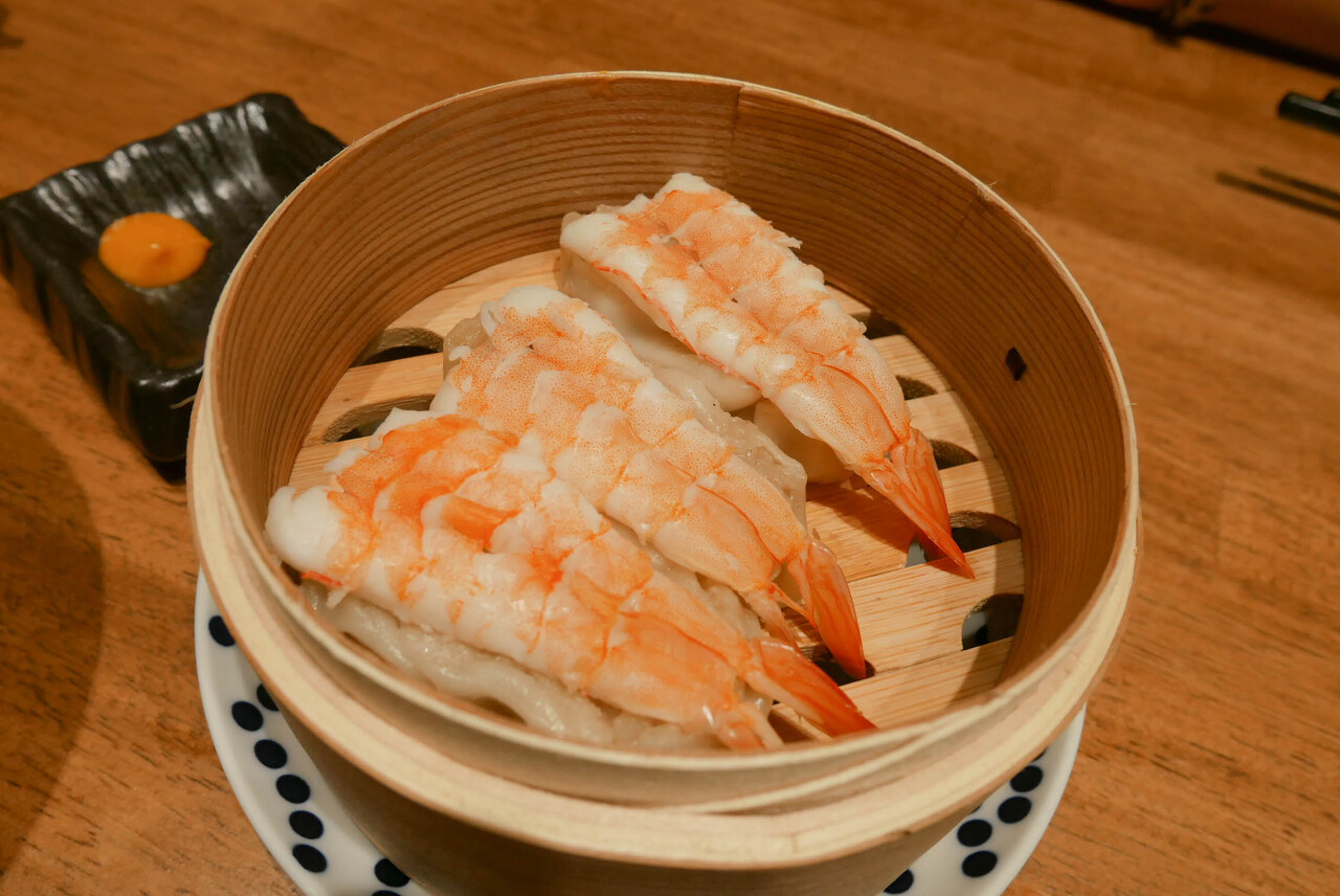 エビシュウマイは寿司ネタのエビの形で登場。