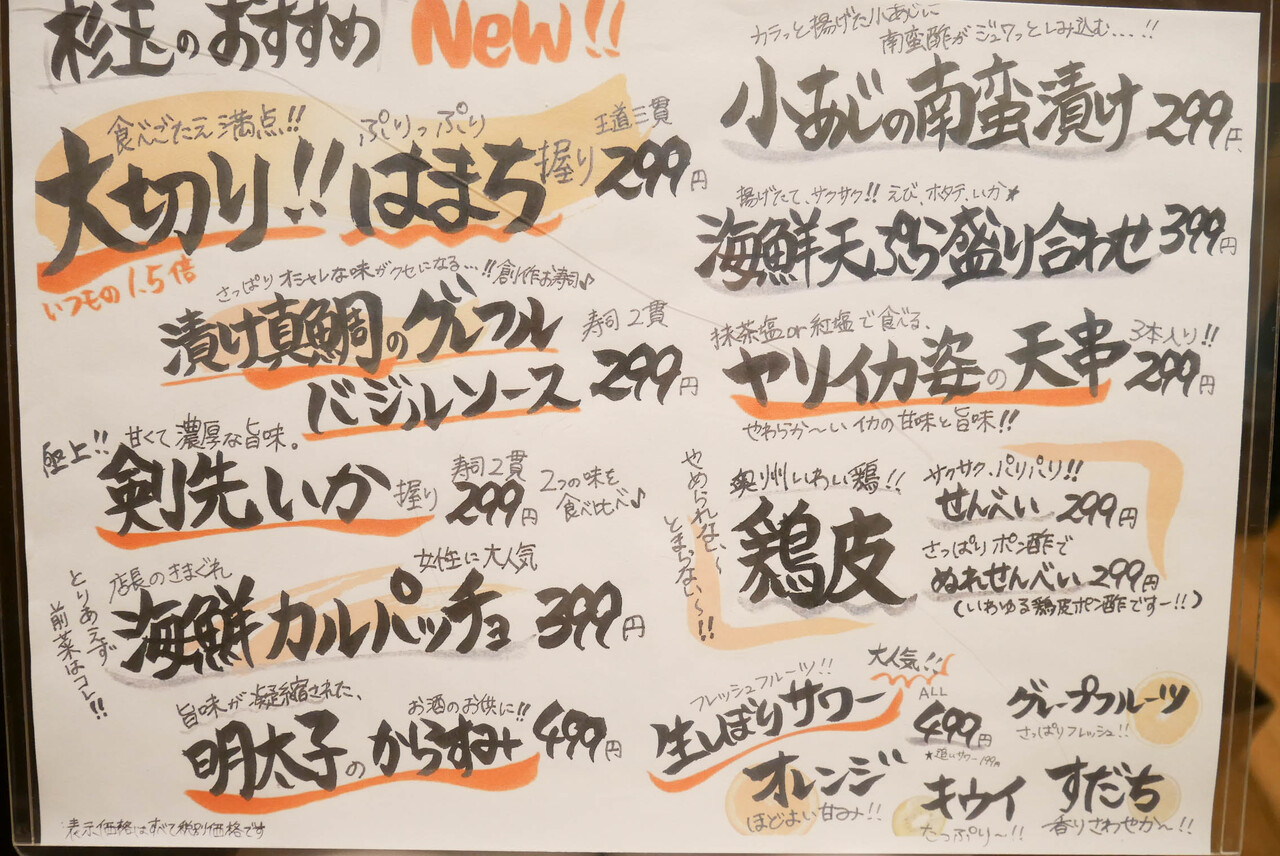 【大宮東口】居酒屋「鮨・酒・肴 杉玉」のメニュー