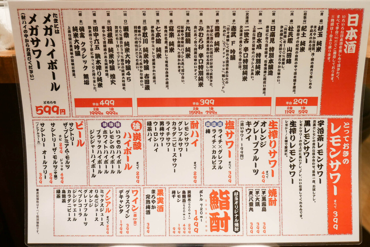 店名が「杉玉」なので日本酒多めのラインナップ