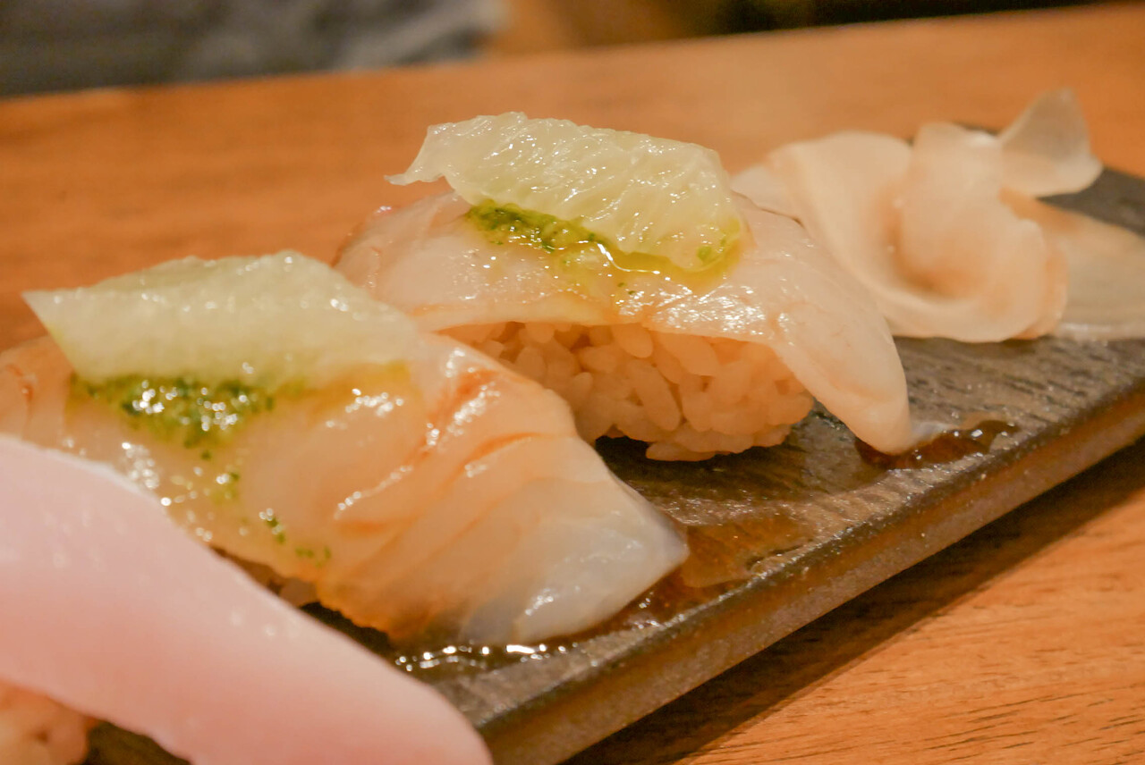 グレフルもバジルソースも真鯛のお寿司の使いまわし食材だな・・・!