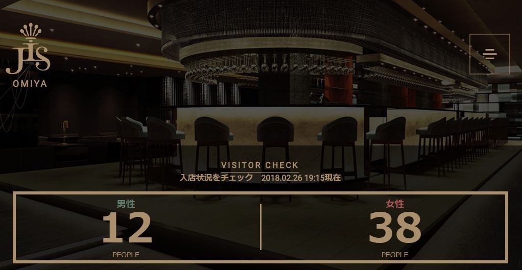 男女別に店内にいるお客さんの人数が表示されます