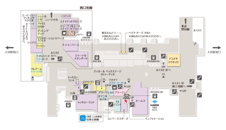 大宮駅にはルミネがありますが、それぞれルミネ1、ルミネ2と分かれています