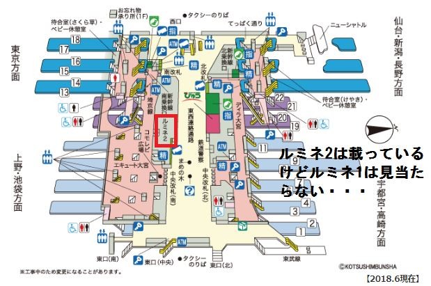 ルミネ2は西口の駅出口直結で駅の構内案内図にもギリギリ載っているのでわかるようですが、ルミネ1は構内図に載っていないので混乱している人も多いとか