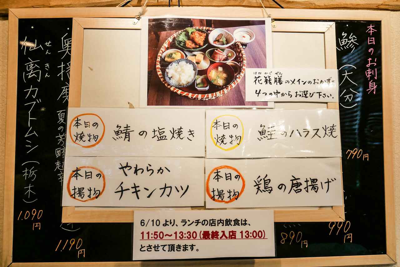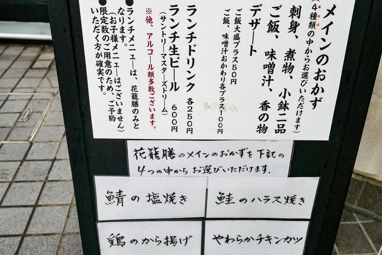 ランチは花籠膳のみのご提供ですが、メインのおかずをセレクトできますよ。