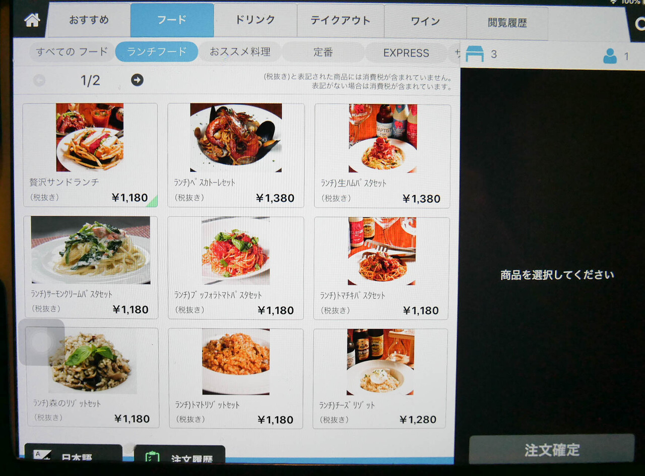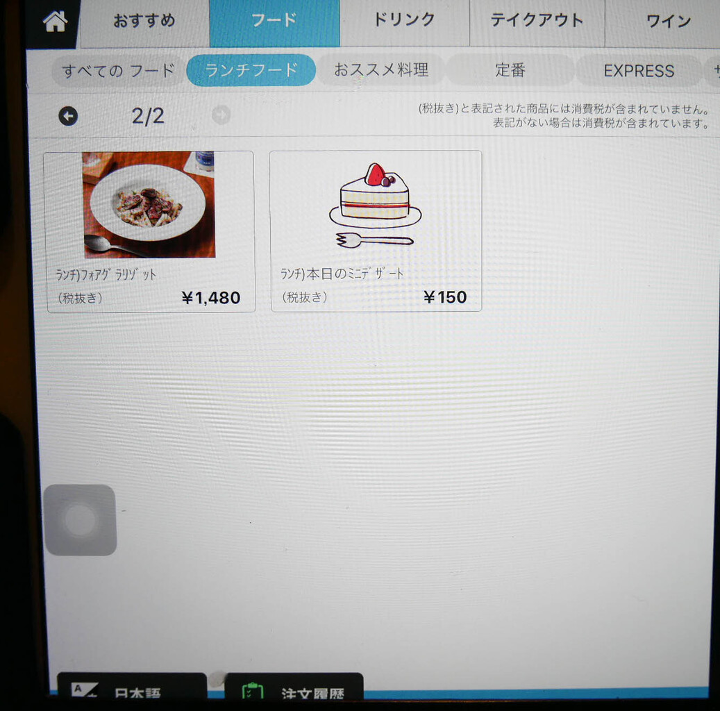 注文はタブレットで、お会計のときもこちらのタブレットが伝票かわりになるようです。