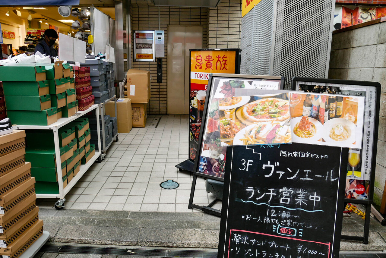 店舗へはこちらのエレベーターを使うことで入店できます。