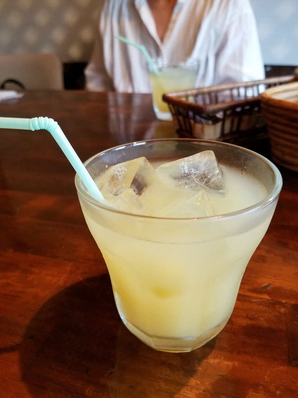 最初のドリンクです。奥さんが頼んだ「パインジュース」。