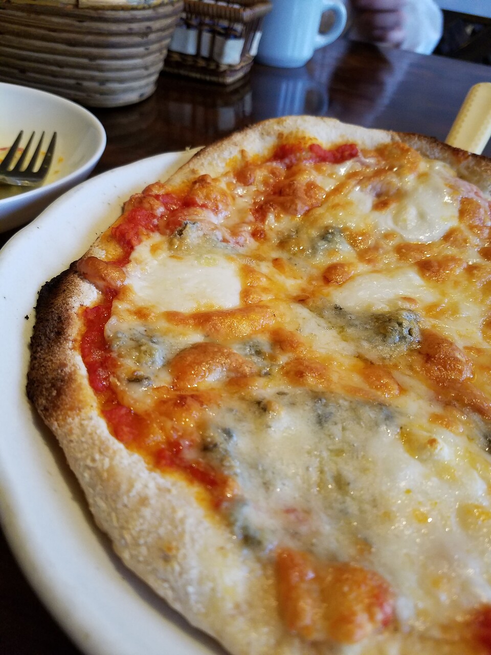 ・・・。よくよく考えると、「クアトロ」がイタリア語で「4」の意味を成しているので、「4種の4種チーズピザ」になるな。