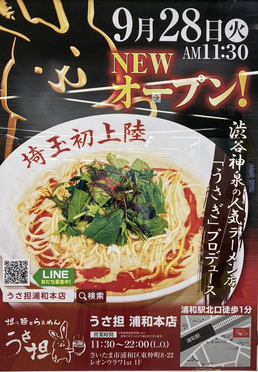 浦和駅東口に担々麺屋「担々麺とらぁめん うさ担 浦和本店」が2021/9/28オープン