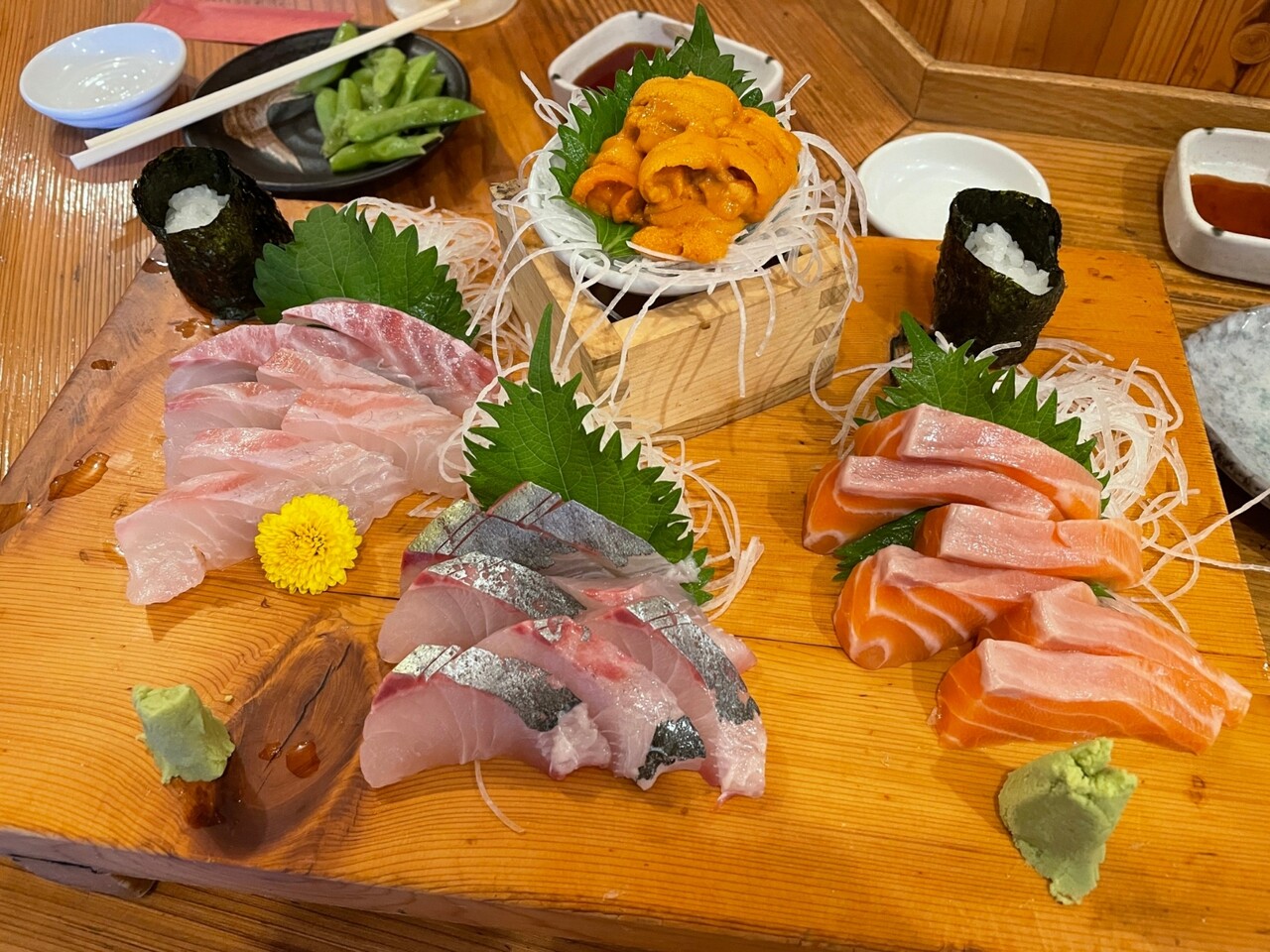 海鮮が美味しい!とのことで刺し身盛りをたくさん頼んでみました!