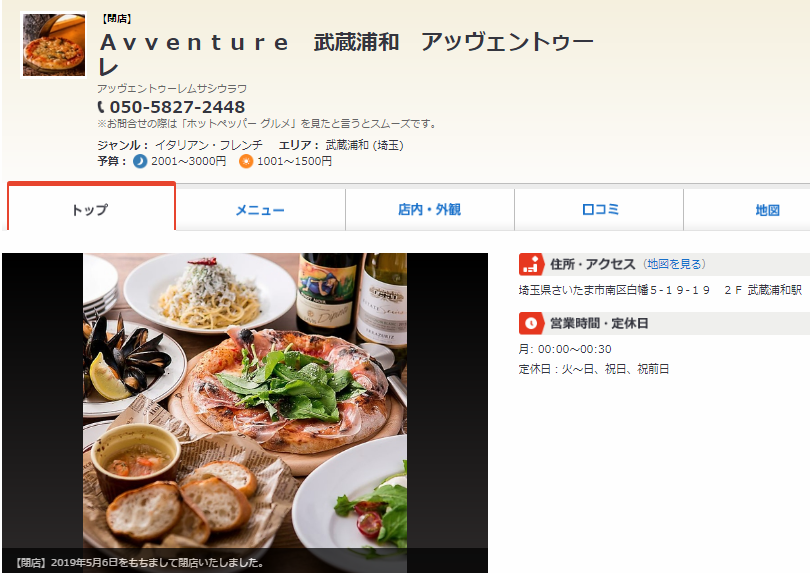 ピザ屋の「アッヴェントゥーレ」が2019/5/6に閉店