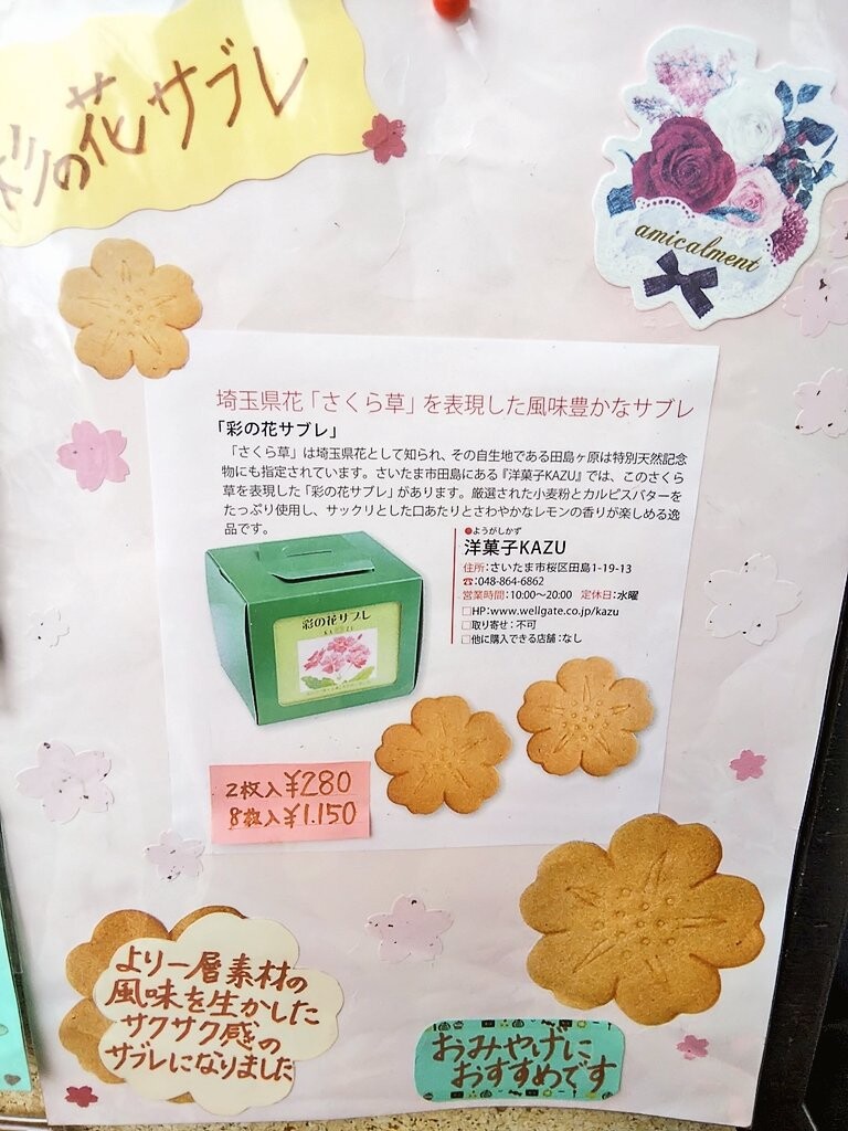 洋菓子KAZUでは埼玉県花「サクラソウ」をモチーフにした「彩の花サブレ」を販売しています。