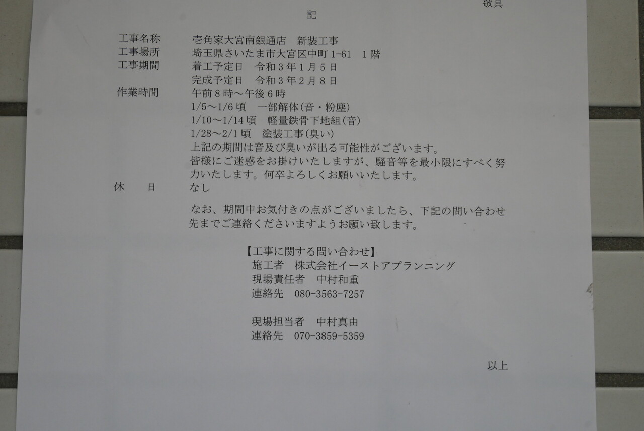 横浜家系ラーメン「壱角家」大宮南銀座通店が2021年2月上旬オープン。