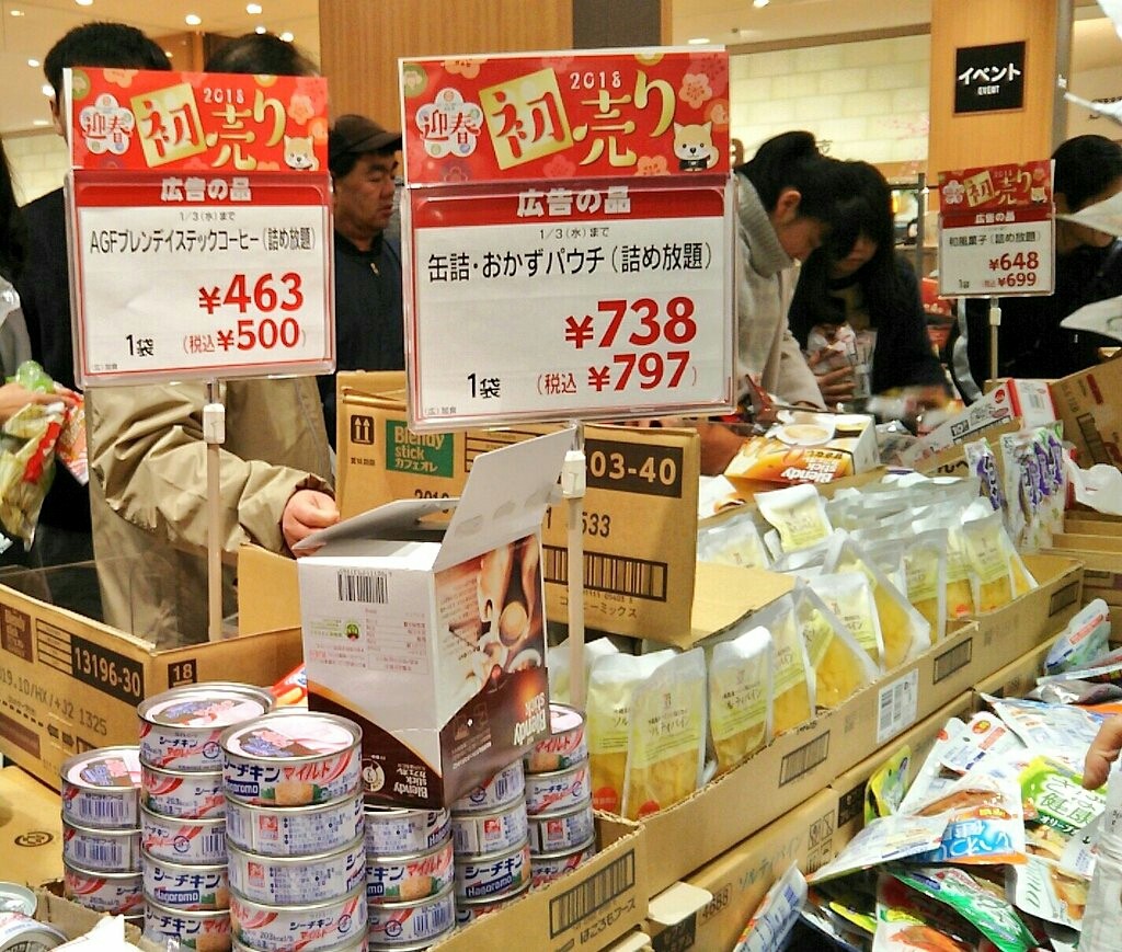 ステラタウンでは様々なテナントが入っているので元日は福袋目当ての人もたくさんいるのですが、「詰め放題」もかなりの目玉だな、と思いました