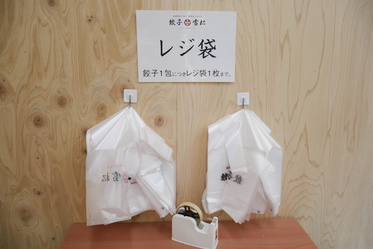 レジ袋は餃子1パックにつき1枚まで無料となっていました。